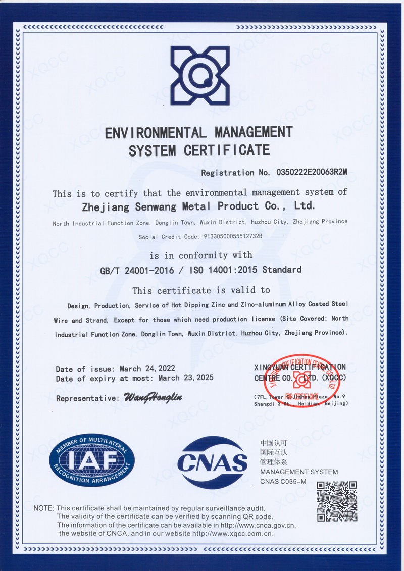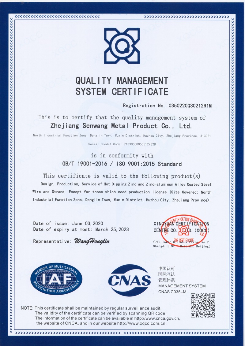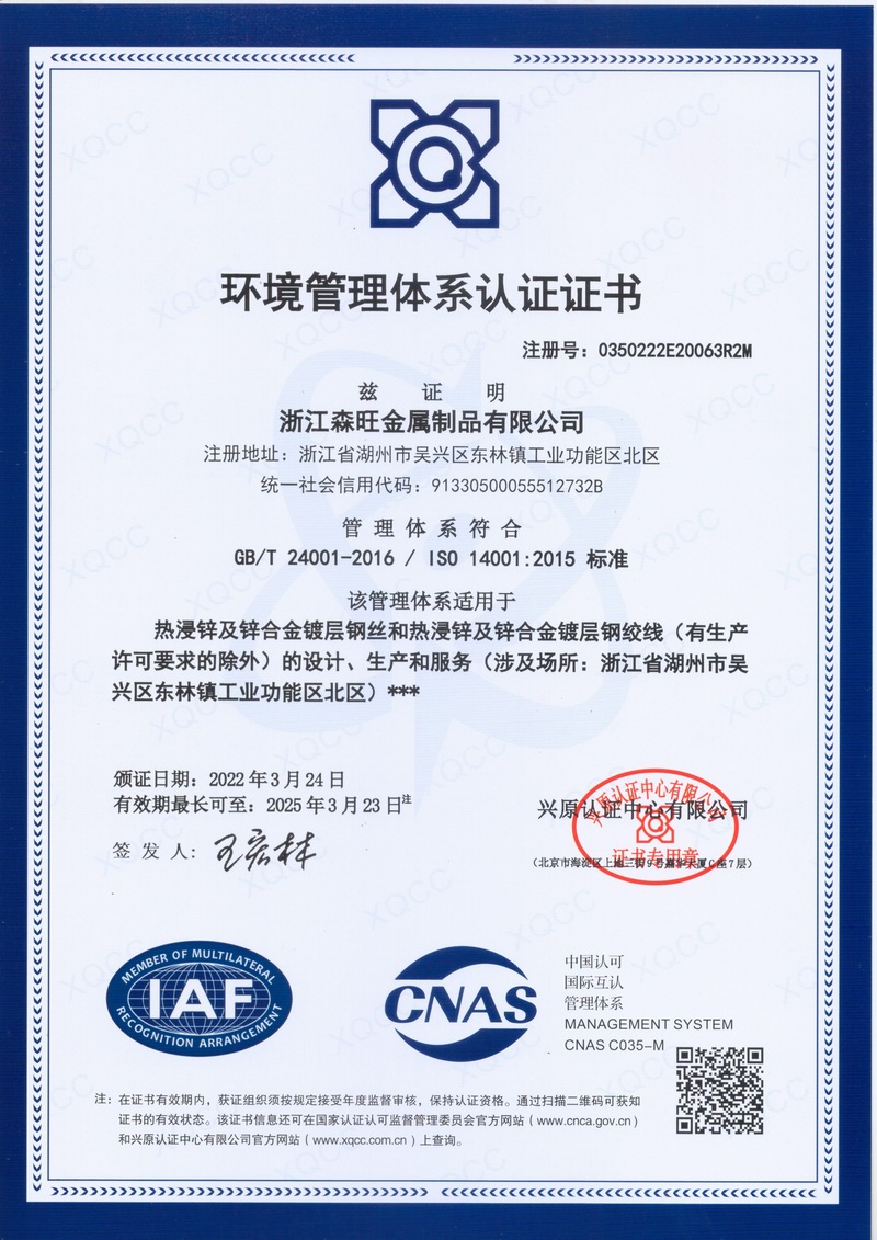浙江森旺金屬制品有限公司成立于2012年,坐落湖州市吳興區(qū)東林鎮(zhèn)工業(yè)功能區(qū)。公司專業(yè)從事各類鍍鋅鋼絲、鋼絞線等產(chǎn)品的開(kāi)發(fā)及生產(chǎn)。目前產(chǎn)品已廣泛應(yīng)用于各類通信光電纜,電力輸送,電氣化鐵路工程,各類堤壩防護(hù)及農(nóng)業(yè)溫室等工程領(lǐng)域。公司秉承“追求卓越品質(zhì),創(chuàng)建卓著信譽(yù)”的經(jīng)營(yíng)理念,始終堅(jiān)持專業(yè)化、規(guī)?;慕?jīng)營(yíng)模式。